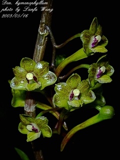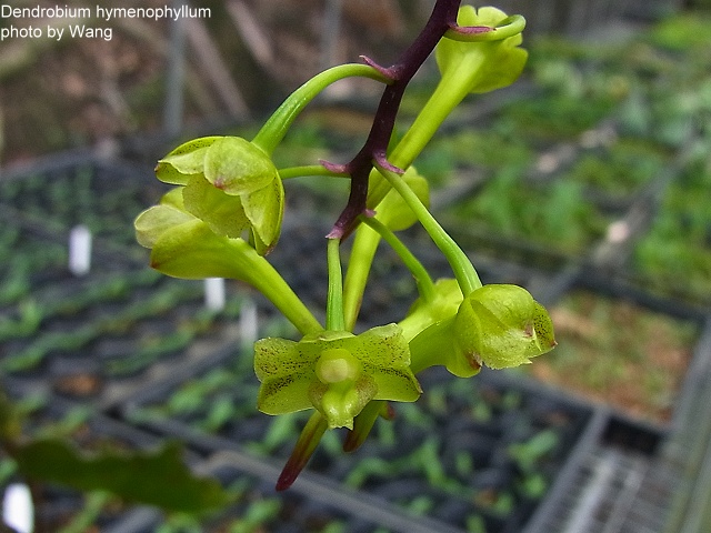學 名 : Dendrobium hymenophyllum 中文名稱 : 產 區 : 蘇門達臘 ,爪哇 植株大小 : 35 ~ 40公分 花 徑 : 1.5 ~ 2公分 花 期 : 春季 ~ 初夏 花 壽 : 10 ~ 15天 氣 味 : 無 日 照 : 中強光 栽培難度 : 容易 |