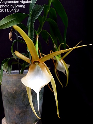 Angraecum viguieri Distribution : Madagascar Plant Size : 15 ~ 100 cm Flower Size : 14 cm Flowering Season : Summer Longevity of Flowers : 15 ~ 20 days Fragrance : Fragrant Sunlight : Moderate Difficulty of Cultivation : Easy |