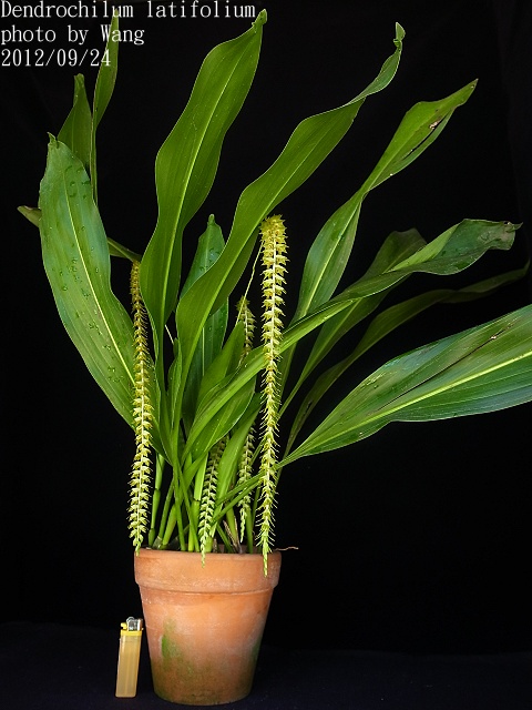 Dendrochilum latifolium Distribution : Philippines Plant Size : 50 ~ 70 cm Flower Size : 1.25 cm Flowering Season : Fall Longevity of Flowers : 15 ~ 20 days Fragrance : Faint Sunlight : Moderate Difficulty of Cultivation : Easy |