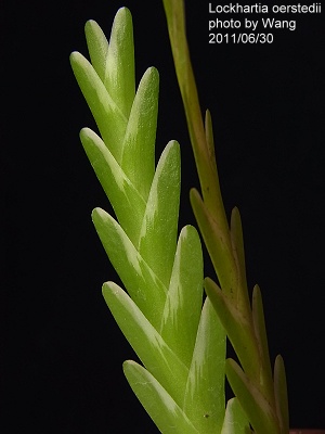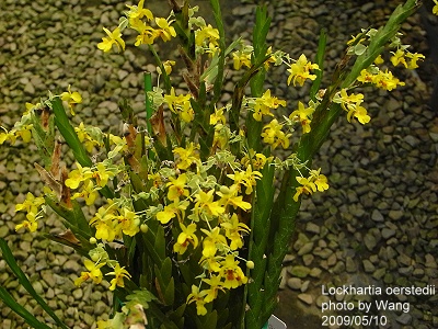 學 名 : Lockhartia oerstedii 中文名稱 : 髮瓣蘭 產 區 : 墨西哥 ~ 巴拿馬 植株大小 : 10 ~ 30公分 花 徑 : 1.3 x 2公分 花 期 : 夏季 ~ 秋季 花 壽 : 7 ~ 10天 氣 味 : 淡香 日 照 : 中光 栽培難度 : 容易 |
