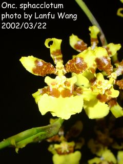 學 名 : Oncidium sphacclotum 中文名稱 : 產 區 : 植株大小 : 花 徑 : 花 期 : 花 壽 : 氣 味 : 日 照 : 栽培難度 : |