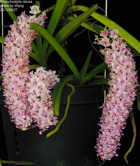 學 名 : Rhynchostylis retusa 中文名稱 : 產 區 : 菲律賓 ,印度 ,泰國 ,馬來亞 ,緬甸 植株大小 : 30 ~ 50公分 花 徑 : 2公分 花 期 : 夏季 花 壽 : 25 ~ 30天 氣 味 : 香 日 照 : 中強光 栽培難度 : 容易 |