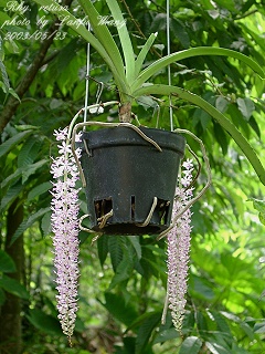 Specific name : Rhynchostylis retusa Distribution : Philippines ,India ,Thailand ,Malaysia ,Burma Plant Size : 30 ~ 50 cm Flower Size : 2 cm Flowering Season : Summer Longevity of Flowers : 25 ~ 30 days Fragrance : Fragrant Sunlight : Moderate ~ Strong Difficulty of Cultivation : Easy |