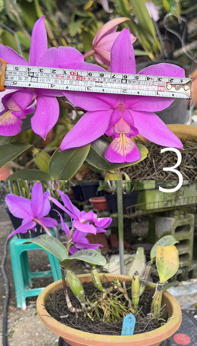 | C. walkeriana fma. trilabelo 'Jenmar' 1梗開3大朵,花徑巨大 |