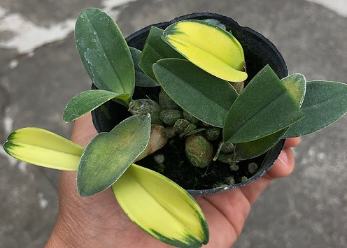 Den. Pittero Gold 'Diamond Ring'日本進口(黃金鑽戒拆芽株) 花期久,覆輪會越開越明顯 共有7芽 加1新芽 最長的1芽 75公分 |